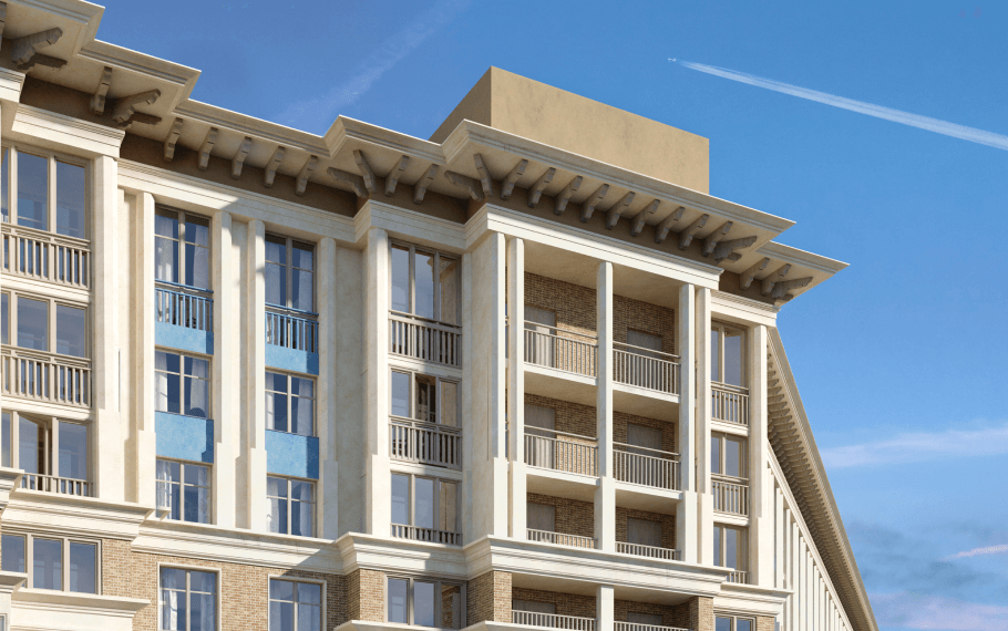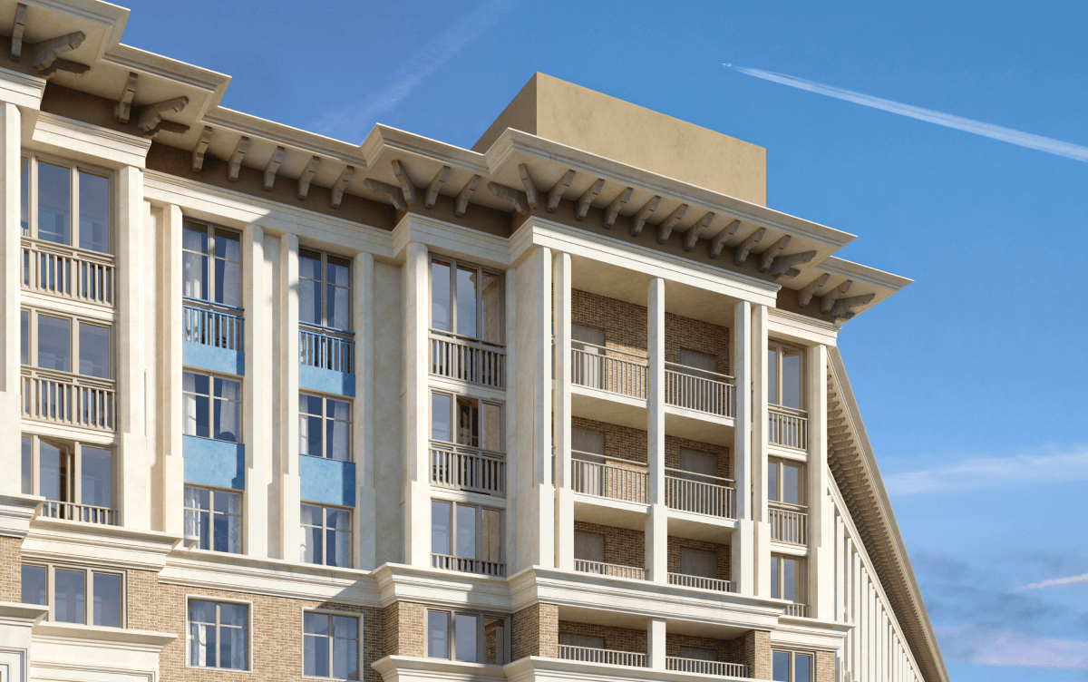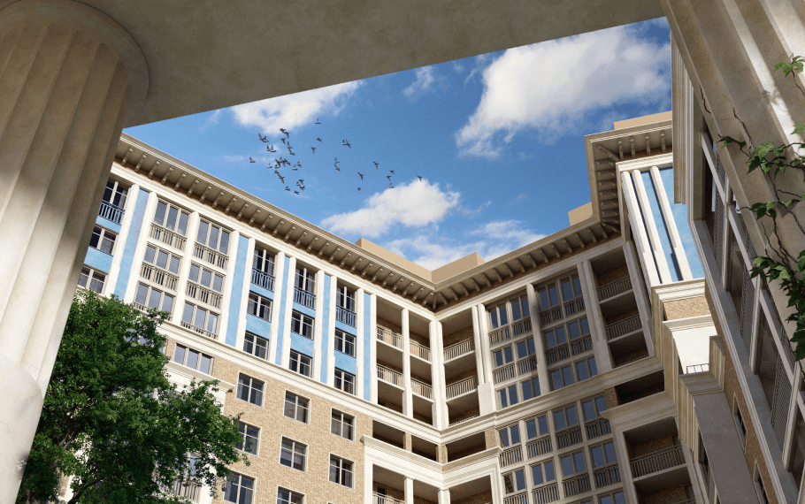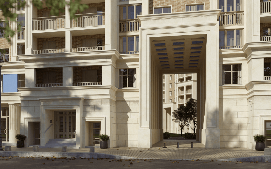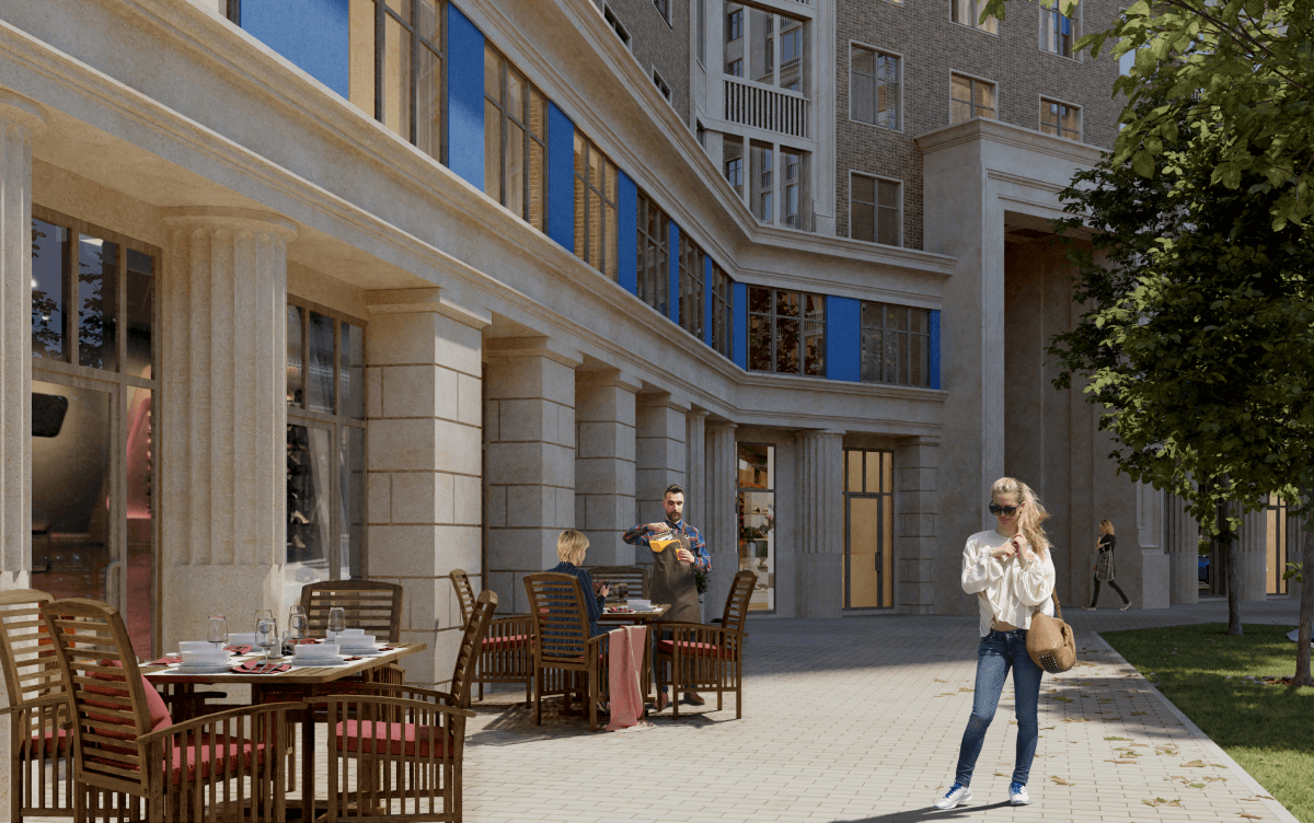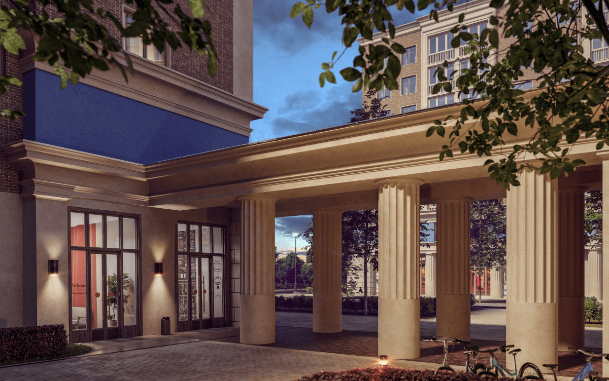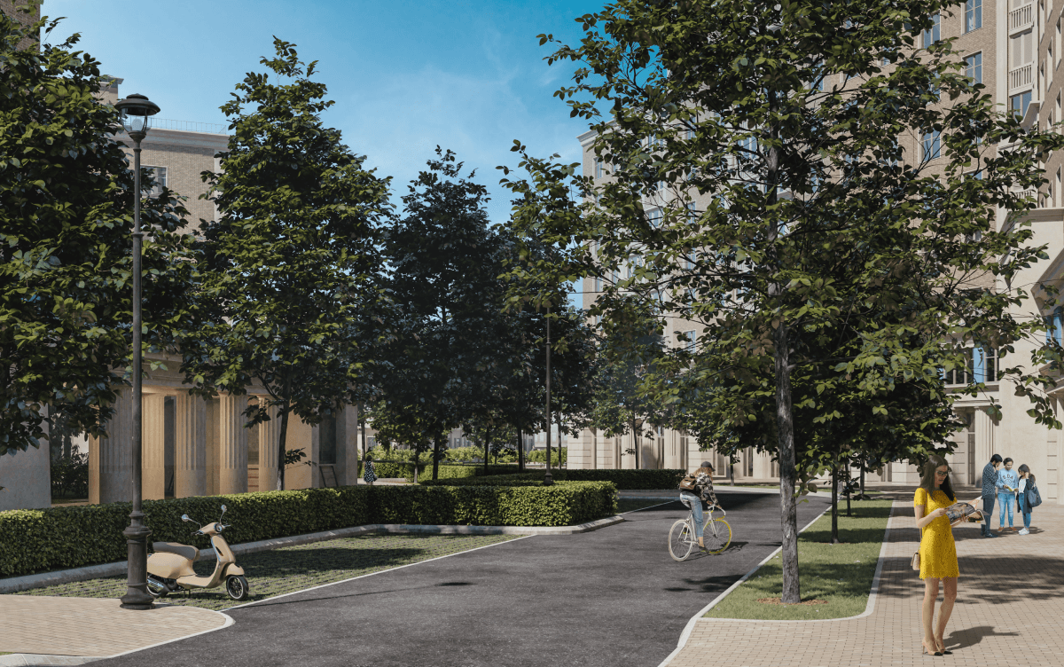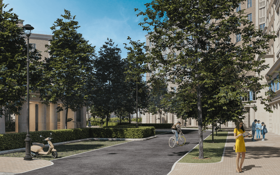 Для того, чтобы смотреть дальше других, нужно стоять на плечах гигантов: мы совмещаем сакральную архитектуру античного Парфенона с постконструктивизмом, создавая насыщенную и разнообразную среду городского квартала с анфиладами расходящихся перспектив.